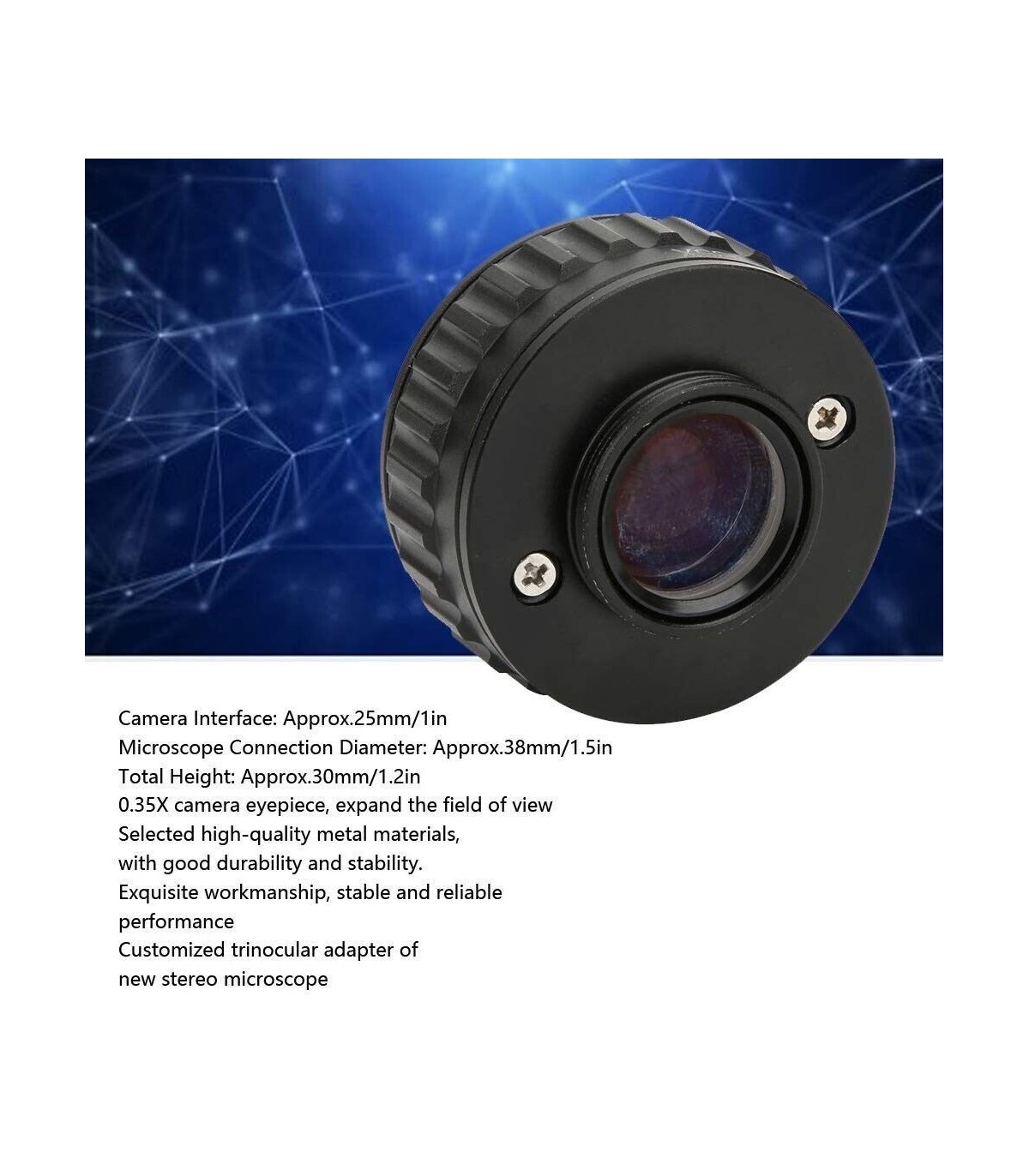 Compatibility: Fits trinocular stereo zoom microscopes