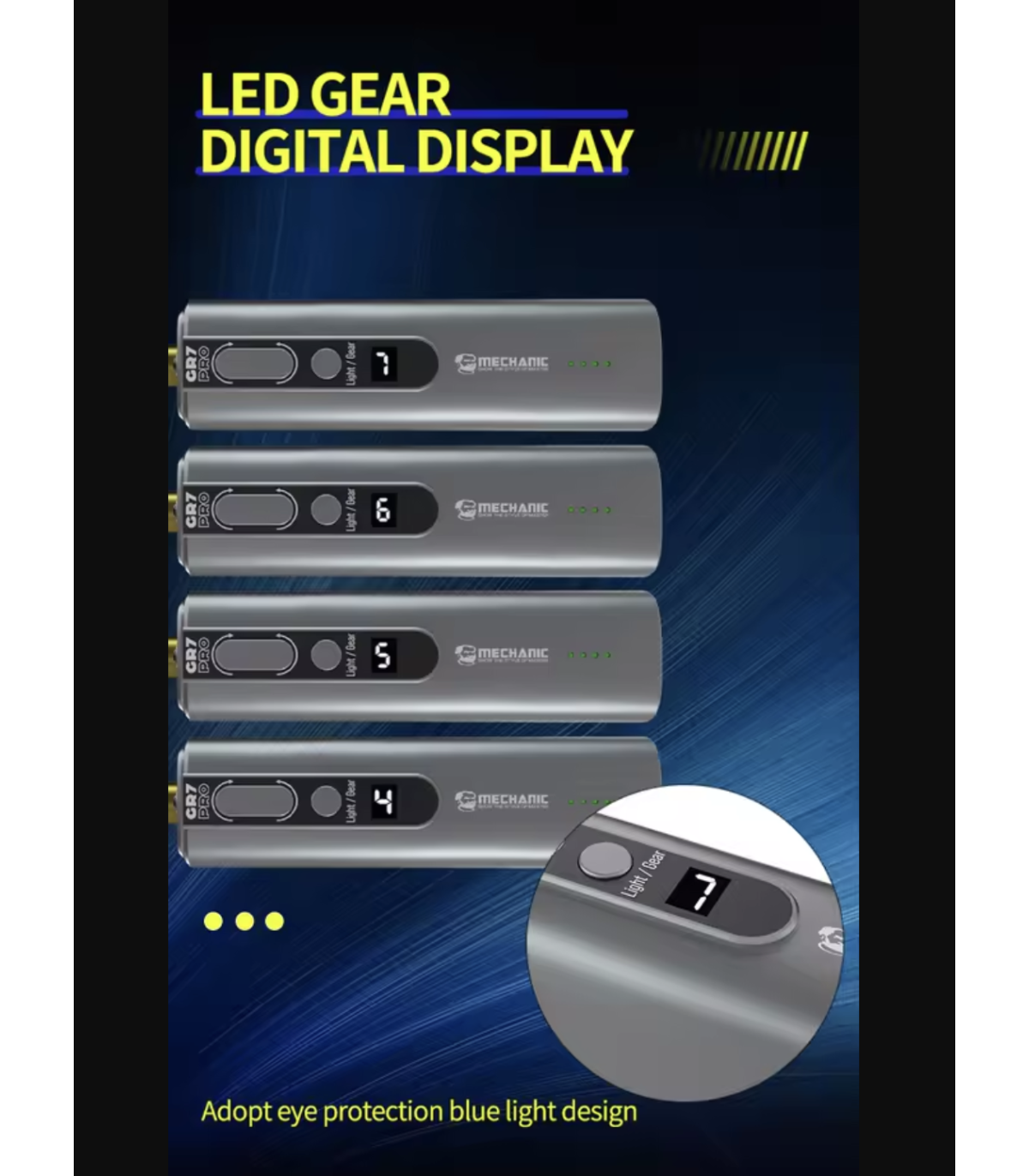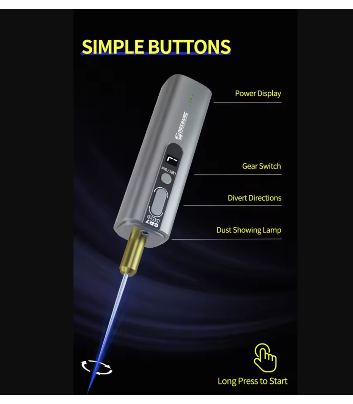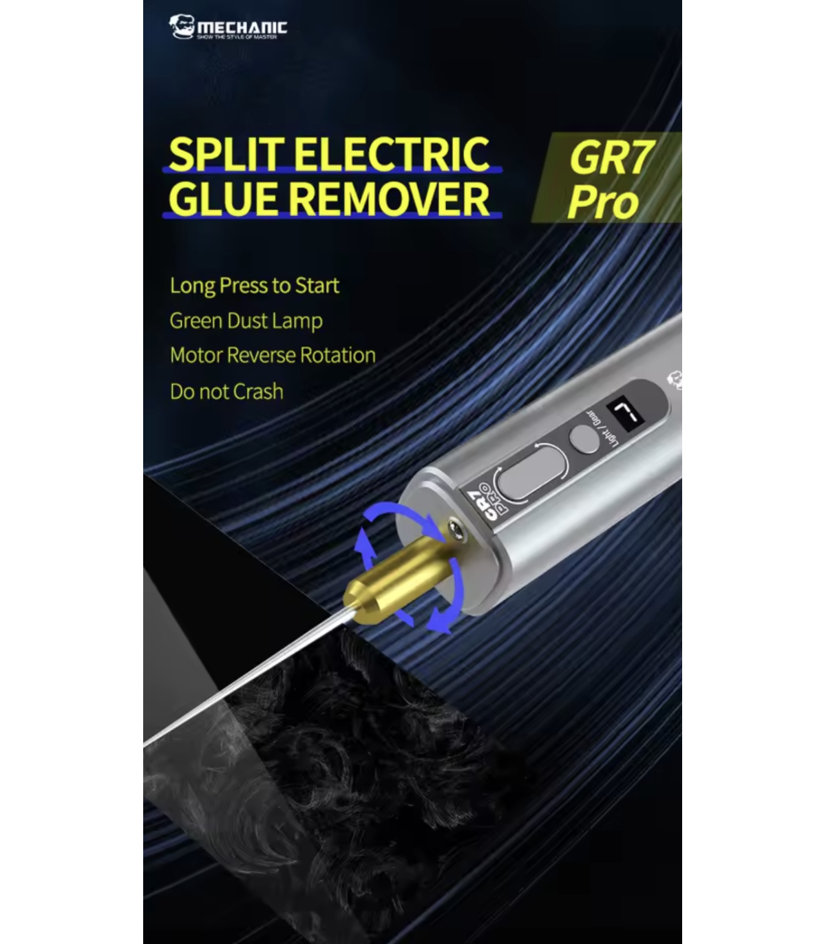 The MECHANIC GR7 Pro Glue Remover is a high-performance electronic repair tool designed to efficiently remove adhesive and glue from devices. With 7 adjustable speeds and a 2000mAh battery, it ensures precise control, safe operation, and long-lasting performance during mobile phone, tablet, and electronics repair.