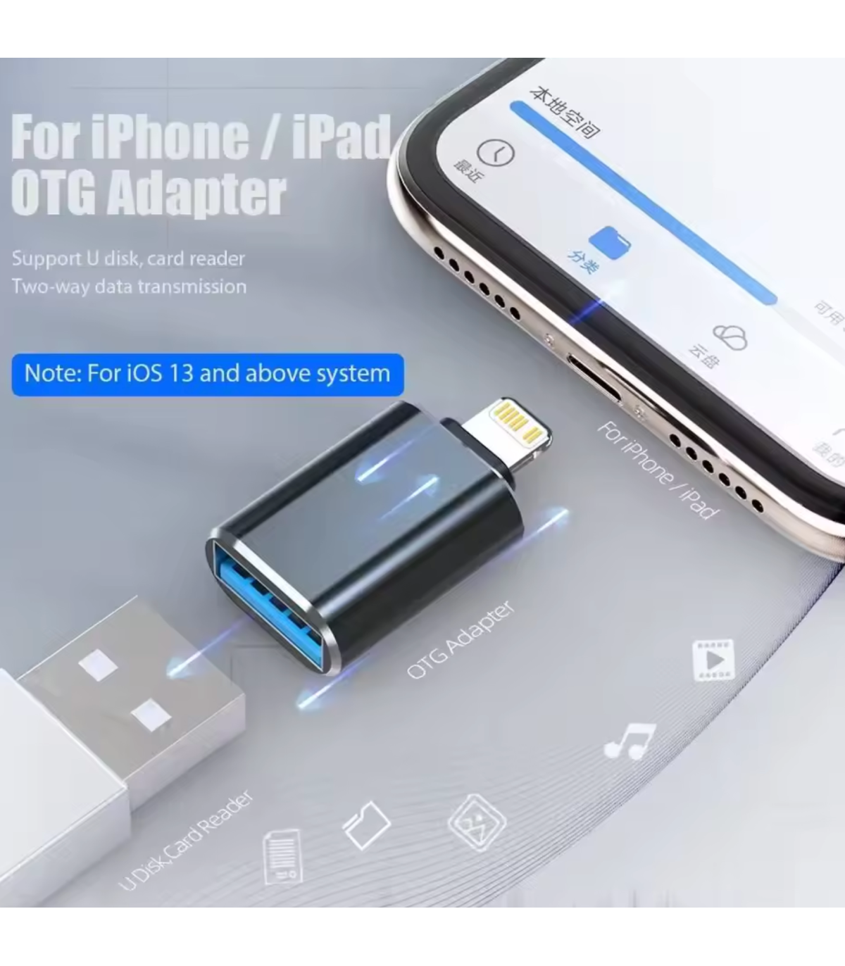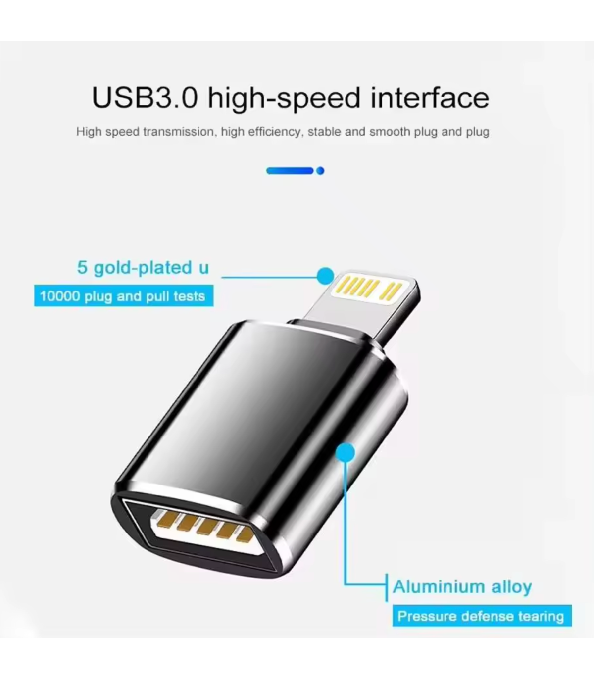 Utilizes USB 3.0 technology for high-speed data transfer, enabling swift and efficient file transfers between iOS devices and USB peripherals. Ideal for transferring large files, such as photos, videos, and documents, with minimal waiting time.