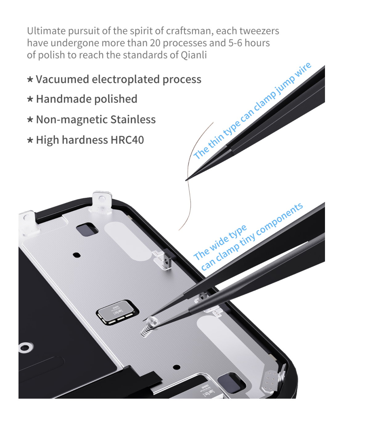 The QIANLI INEEZY FX-03 Precision Tweezers are specially designed for delicate electronic and repair work. With a fine 0.15mm tip, these tweezers allow you to handle small components with maximum accuracy. Made from high-quality non-magnetic stainless steel, they prevent interference when working with sensitive parts. Ideal for mobile phone repair, circuit board assembly, jewelry, and precision DIY projects.