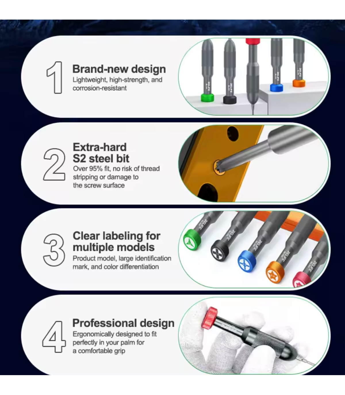 RELIFE RL-717 Rocket Head Screwdrivers for Disassembling Android IP 17 Phone Precise Repair Bolt Driver Nonslip Screwdriver Set