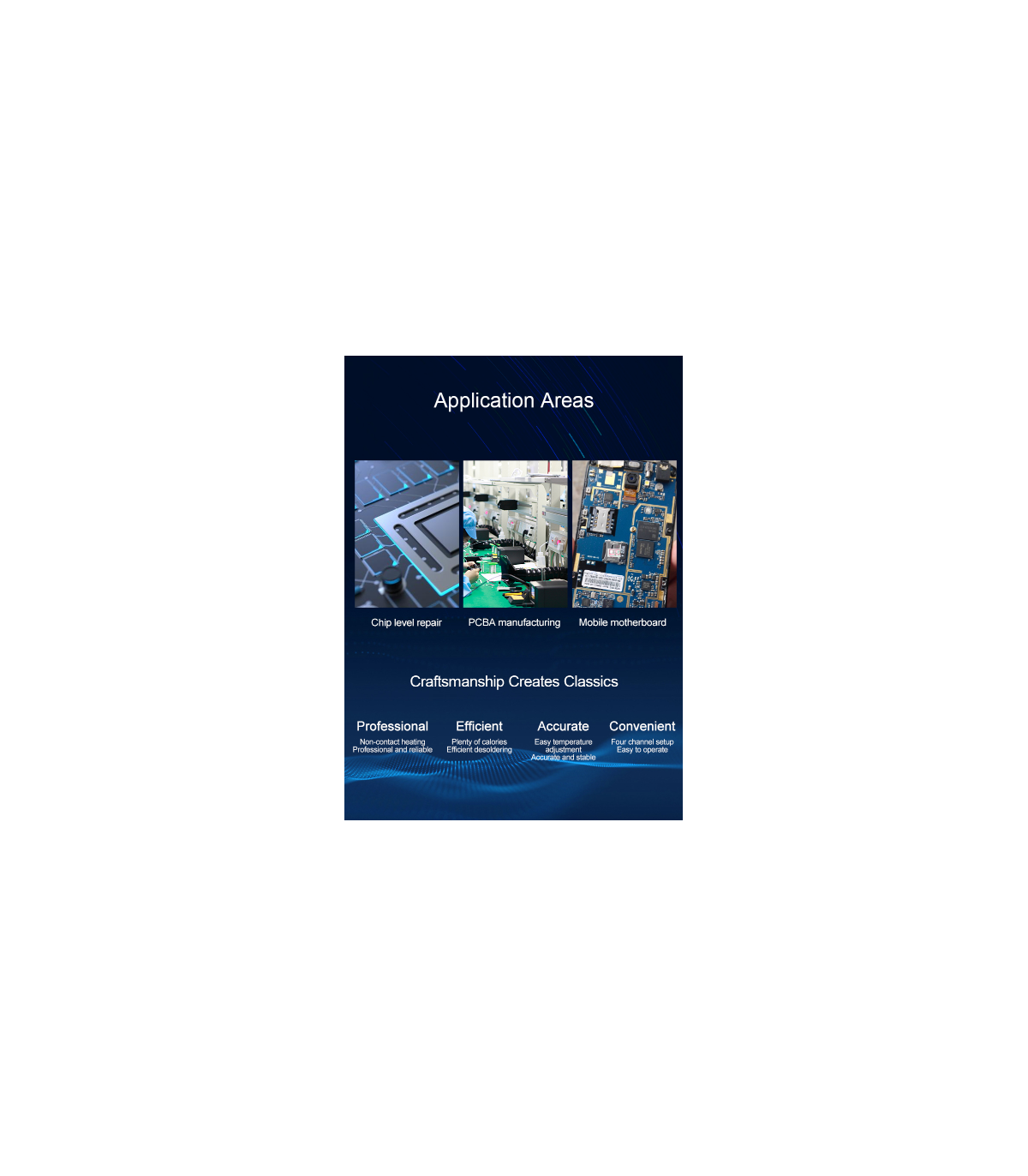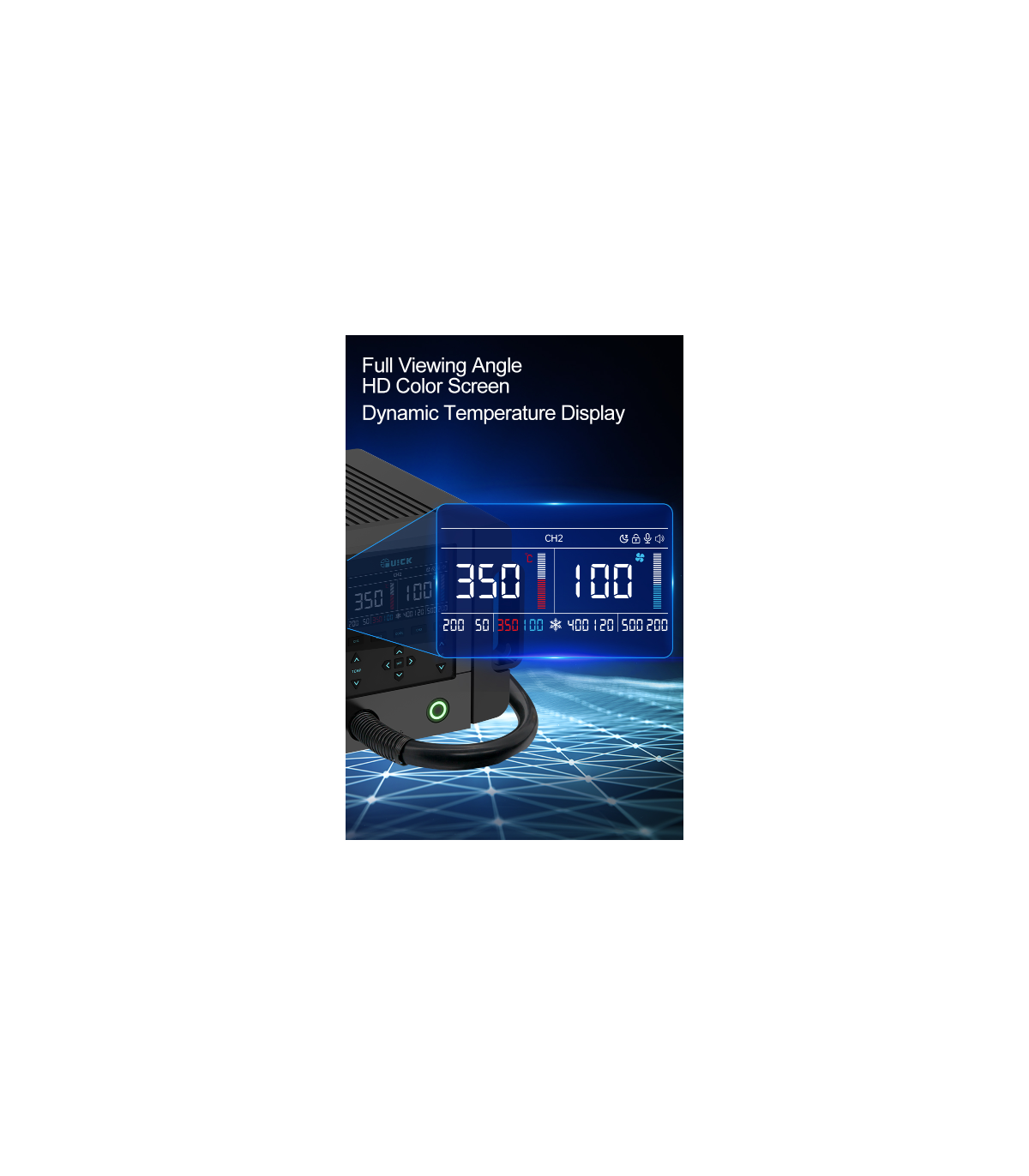 The QUICK 861 Pro SMD Rework Station with Voice Control 1300W is a professional-grade tool designed for precision soldering and desoldering of smd components. Equipped with advanced voice control and high-power output, it ensures efficient, accurate, and reliable performance for electronic repair and rework tasks.