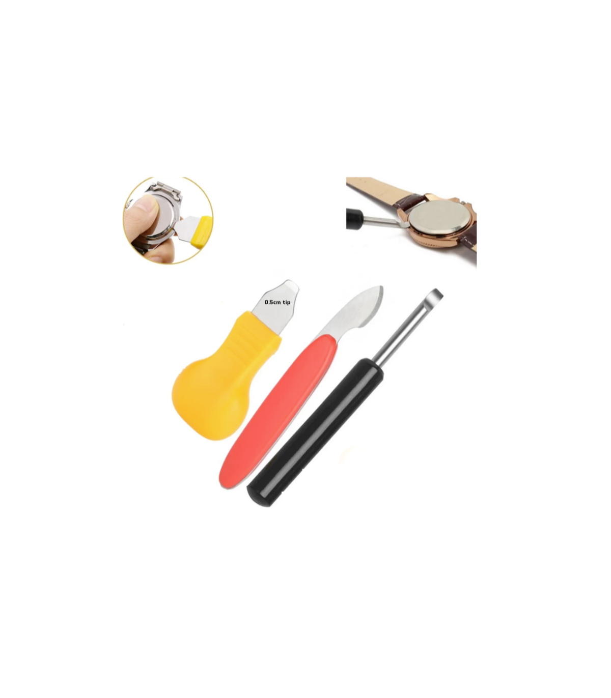 Easily repair and maintain your watches with the 3-Piece Watch Back Case Opener & Repair Tool Kit. Designed for precision and convenience, this set includes tools for opening watch backs, removing straps, and replacing batteries — ideal for both professionals and DIY enthusiasts. Perfect for quick watch repairs and maintenance at home or in the workshop.